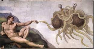 PASTAFARIANESIMO - Per quei pochi che non sapessero di cosa parliamo facciamo un breve preambolo. Un giorno Bobby Henderson, promettente fisico appena laureato, per protestare contro la decisione del consiglio per l’istruzione del Kansas di insegnare il creazionismo nei corsi di scienze come un’alternativa alla teoria dell’evoluzione, ha inventato una religione tutta sua. In questa religione la divinità creatrice dell’Universo, cioé il Mostro di spaghetti volante, una sera che era particolarmente sbronzo, casualmente aveva dato vita a tutto ciò che esiste, con un solo movimento di quelle che i credenti chiamano “la sua spaghettosa appendice”. Volete convertirvi? Fatelo: questa è una religione certamente più liberale di altre. A dimostrazione di ciò, ecco i suoi comandamenti (o condimenti, altresì conosciuti come “Preferirei davvero che tu evitassi) dettati da sua spaghettosità sul Monte Sugo al primo profeta della religione. Ramen.